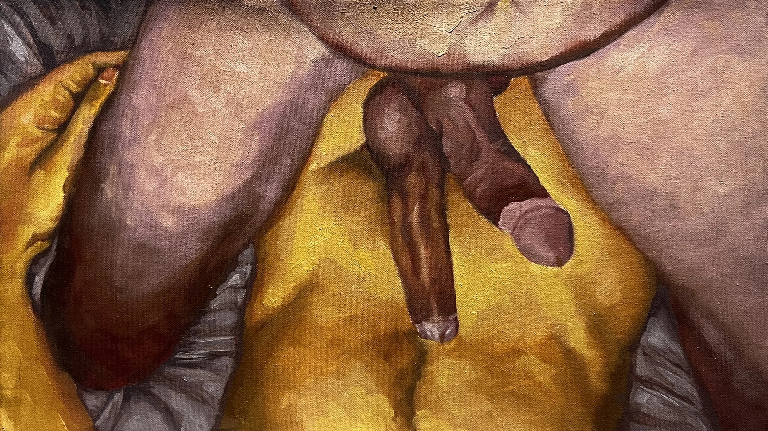 Come Where The Boys Are (2024) engages with the notion of ephemeral desire through exploring the relationship between queer intimacy and distance. These works are part of a series in oil painting on board.